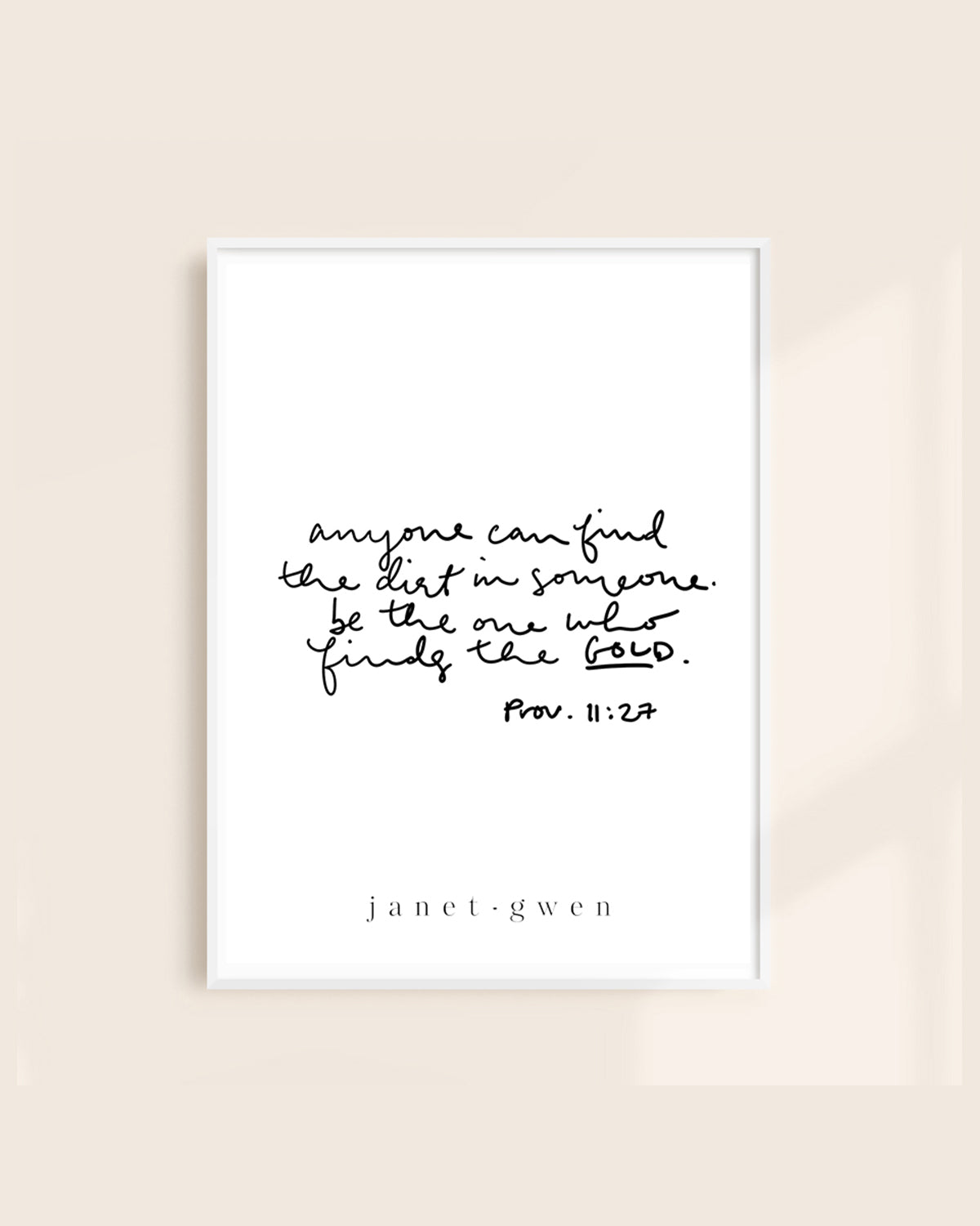 "Anyone can find the dirt in someone. Be the one who finds the gold." Prov. 11:27